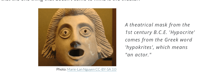 I digress, back to the topic at hand, hypocrites. The word hypocrite, simply stands for actor or stage player.