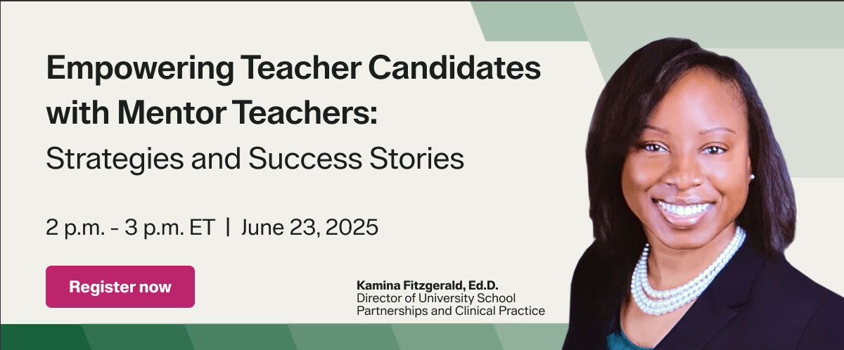 Join us in this webinar to learn strategies for designing and managing a mentor teacher program to support your teacher candidates and hear directly from colleagues who are currently facilitating successful programs.