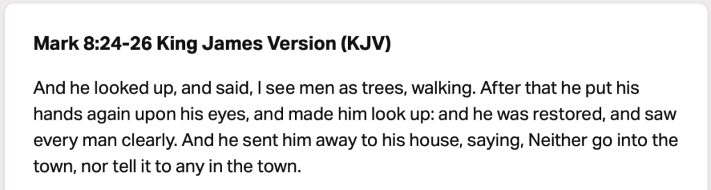 Jesus and the blind man could have stopped with him seeing men as trees walking, but they did not stop there. Jesus touched his eyes again and everything was clear for the blind man. That is how you need to move in 2026 with your pursuits. Do not settle, or rush the process.